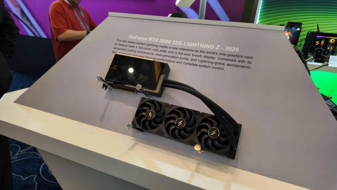2026年CES上微星重新发布了这一经典系列的最新旗舰GeForceRTX 5090 32G LIGHTNING Z,标志着LIGHTNING系列时隔多年强势回归。该显卡为极限性能而生,采用40相VRM供电设计 和 双12V 2×6辅助电源接口,能够在默认OC模式下提供约800W功耗,在Extreme Mode下可达1000W级别,官方建议搭配至少1600W电源使用,更为极限的XOC BIOS模式甚至能将功耗上限推向更高区间。为承载如此惊人的功率输出,RTX 5090 LIGHTNING Z配备了全新的一体式水冷散热系统和尺寸巨大的360 mm冷排,并在显卡顶部集成了约8英寸显示屏,不仅提升了散热效能,还能显示系统状态或自定义内容。这款显卡全球限量约1300张,其回归之作不仅延续了微星 LIGHTNING系列对极致性能的追求,也彰显了微星在高端硬件设计上的深厚积累与工程实力。