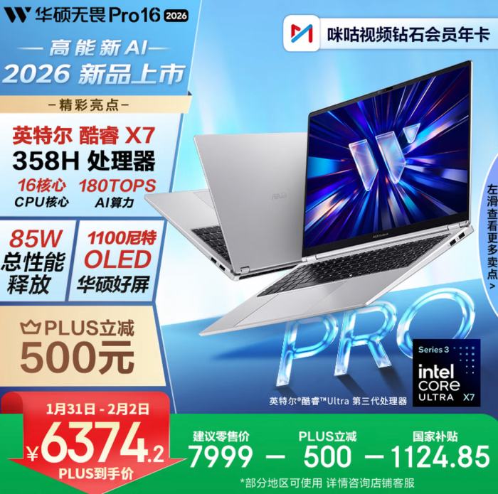 #京东重磅新品日#1月28日华硕京东重磅新品日#开启预约,上京东搜索“华硕无畏Pro2026酷睿版”即可了解更多详情。